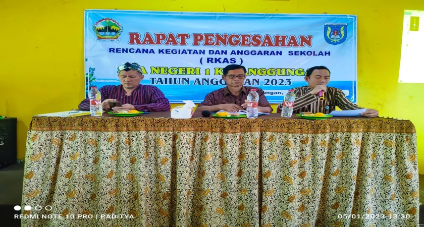 Kamis, 5 Januari 2023. SMAN 1 Ketanggungan mengadakan rapat pleno pengesahan Rencana Kegiatan Anggaran Sekolah (RKAS) tahun anggaran 2023 yang dilaksanakan di Ruang Lab Sekolah SMAN 1 Ketnaggungan. Acara tersebut dihadiri oleh Kepala Sekolah SMAN 1 Ketanggungan beserta Wakil Kepala Sekolah, Staf Tata Usaha, Ketua dan Anggota Komite, dan perwakilan orang tua peserta didik.