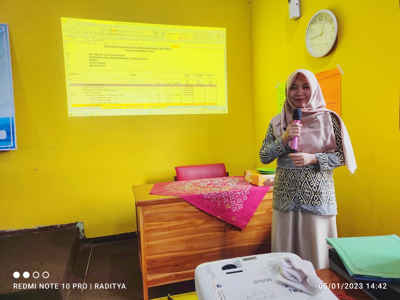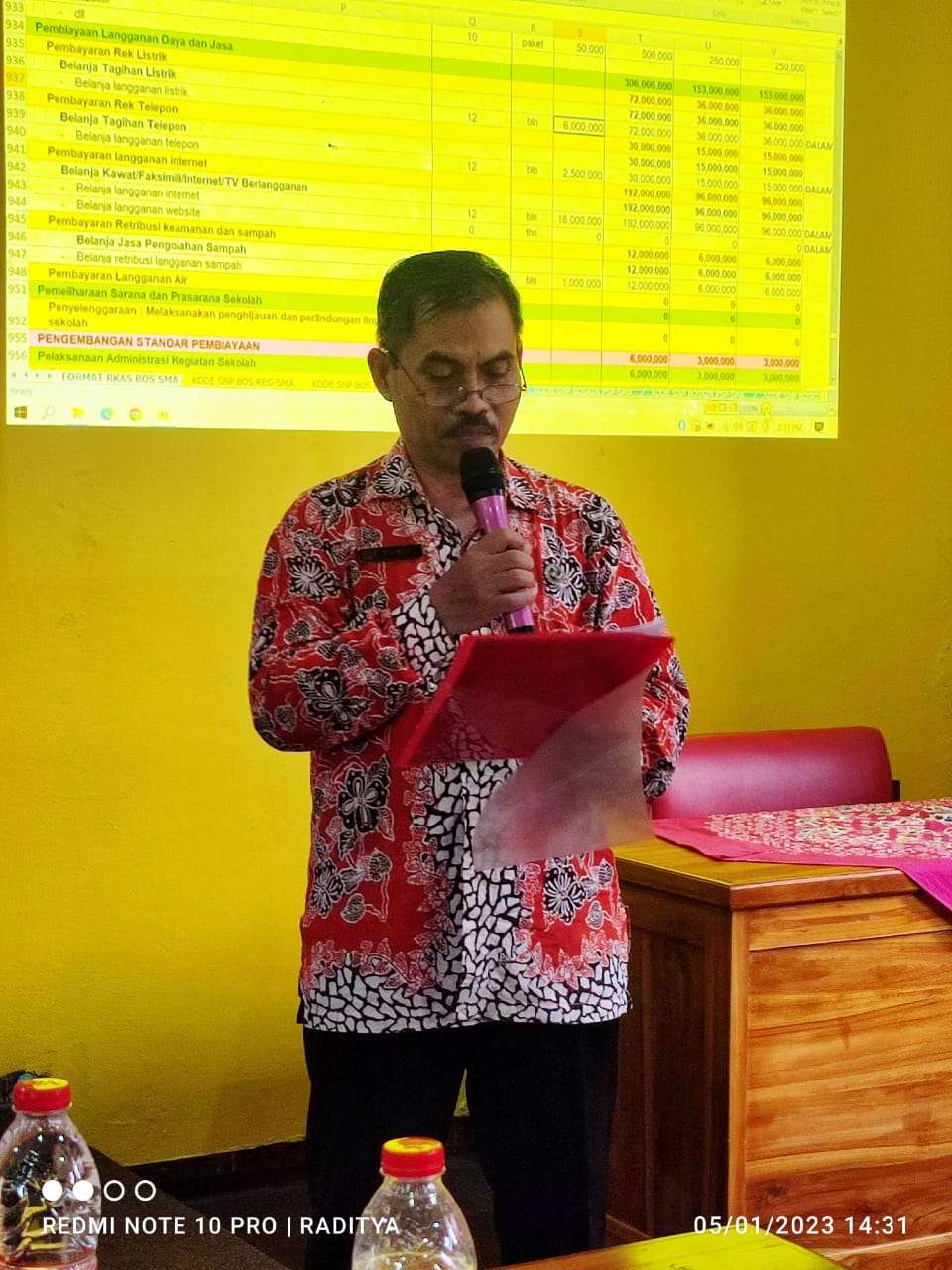 Acara selanjutnya pemaparan RKAS oleh Kuswati sebagai bendahara BOS Tahun 2023. Kuswati mempresentasikan RKAS menggunakan proyektor agar semua peserta rapat bisa melihat secara lengkap dan detail penggunaan anggaran di peruntukan untuk apa saja, Kuswati juga menyampaikan bahwasanya sebagai bendahara baru saya masih harus belajar kepada senior saya agar RKAS bisa sesuai dengan standar dan bisa di setujui oleh Kepala Dinas setempat.