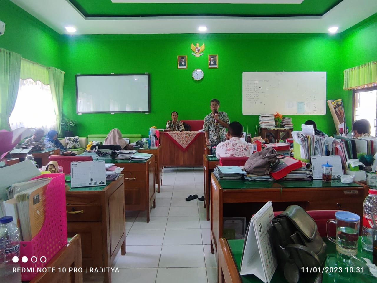 Beliau menyampaikan dan menghimbau agar para bapak dan ibu guru bisa menjalankan tugas dengan sebaik-baiknya sesuai dengan tupoksi masing-masing, membuat tim kerja dengan baik dan hangat agar semua pekerjaan bisa terlaksana dengan baik. Menjaga tutur kata dan sikap untuk menghormati dan menjaga perasaan sesama guru sangat penting pengaruh pada iklim bekerja di lingkungan sekolah. Guru juga sudah seharusnya mempunyai karakter P5 sehingga bisa menjada rule model bagi peserta didik.